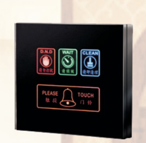 专为酒店精心设计的酒店门牌房态显示门铃,1路“请勿打扰”,1路“请即清理”指示,电容式触摸门铃开关完全可以取代传统机械门铃开关,当客房主人不想被打扰时,按下放内“请勿打扰”开关,门铃显示器上“请勿打扰”指示灯亮,触摸门铃按键时门铃不响,当客人离开后,按下房间内“请即清理”开关,触摸屏的“请即清理”图案背光被点亮,让服务员很清晰的知道客房需要清理的请求