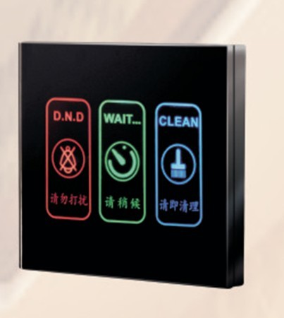 专为酒店精心设计的酒店门牌房态显示门铃,1路“请勿打扰”,1路“请即清理”指示,电容式触摸门铃开关完全可以取代传统机械门铃开关,当客房主人不想被打扰时,按下放内“请勿打扰”开关,门铃显示器上“请勿打扰”指示灯亮,触摸门铃按键时门铃不响,当客人离开后,按下房间内“请即清理”开关,触摸屏的“请即清理”图案背光被点亮,让服务员很清晰的知道客房需要清理的请求